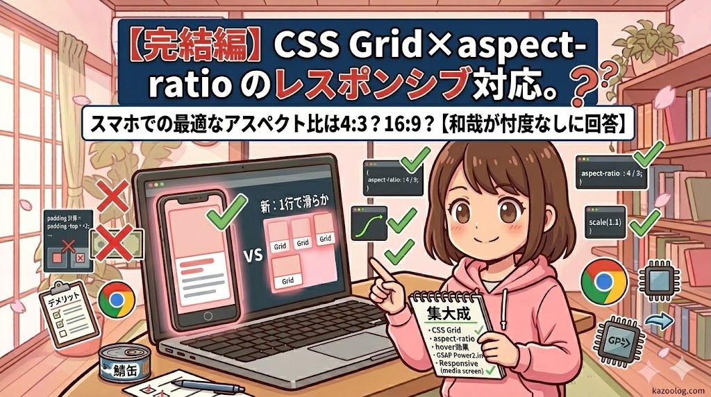 一昨日、昨日と「CSS Grid」での全体の型作り、そして「aspect-rat...